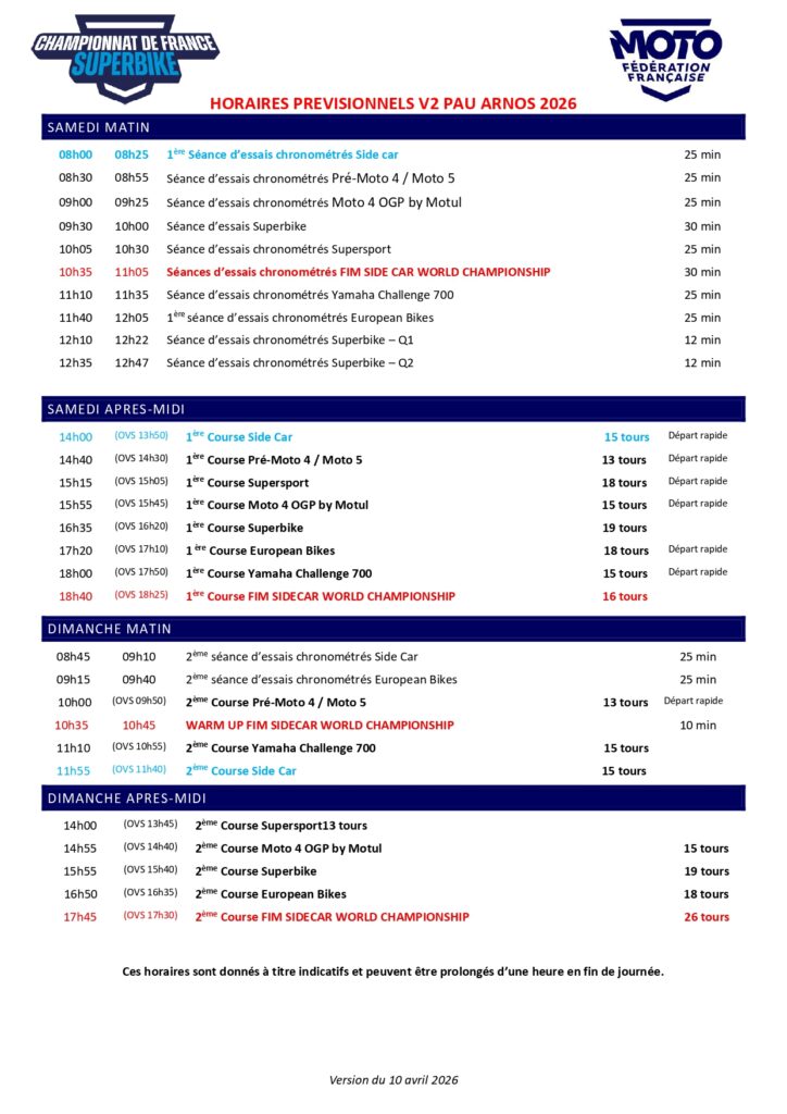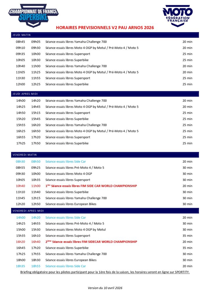 Championnat de France Superbike & Championnat du Monde FIM Side-Cars – 18, 19, 20 & 21 juin 2026- Informations pilotes