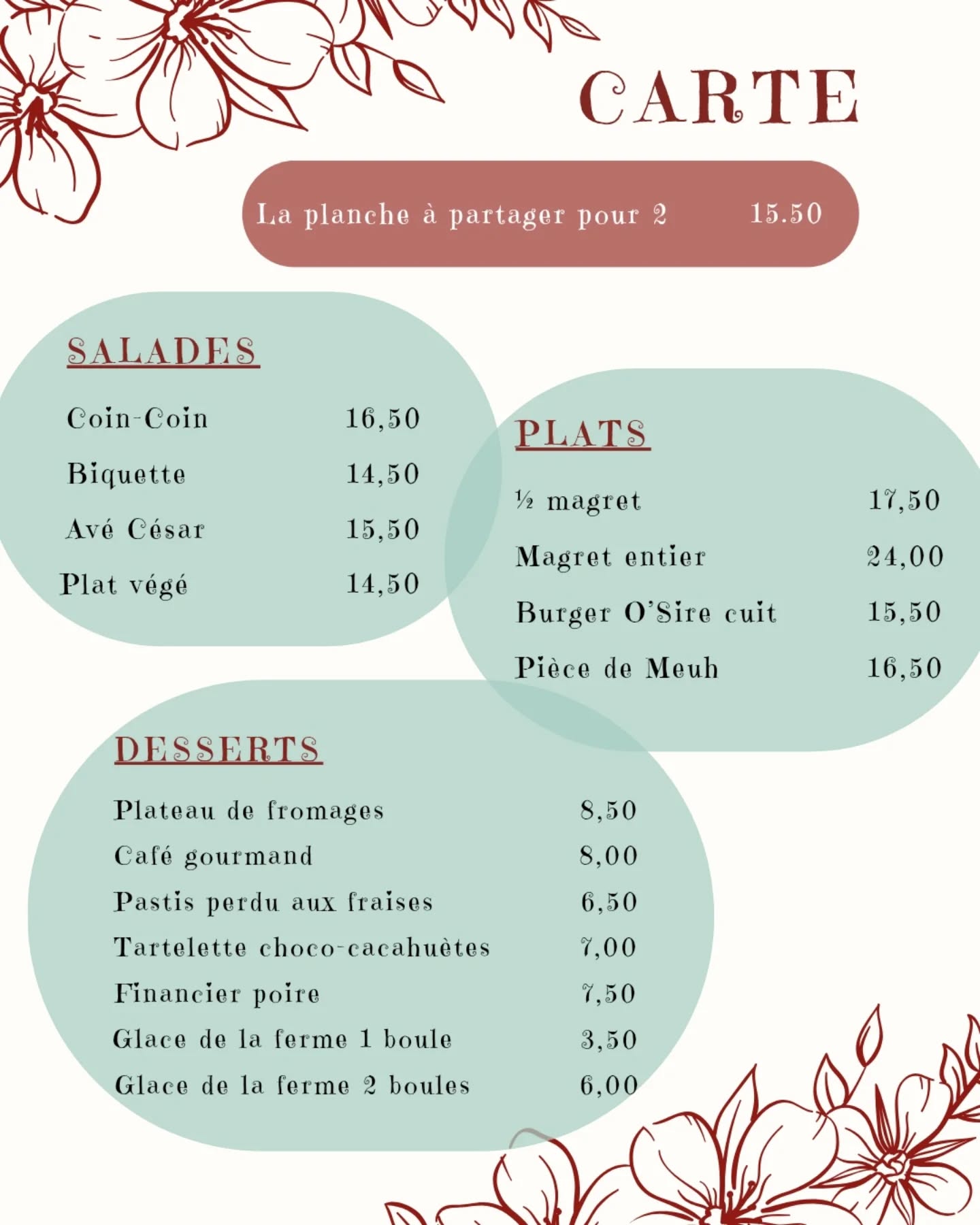 - une carte simple de produits frais et locaux