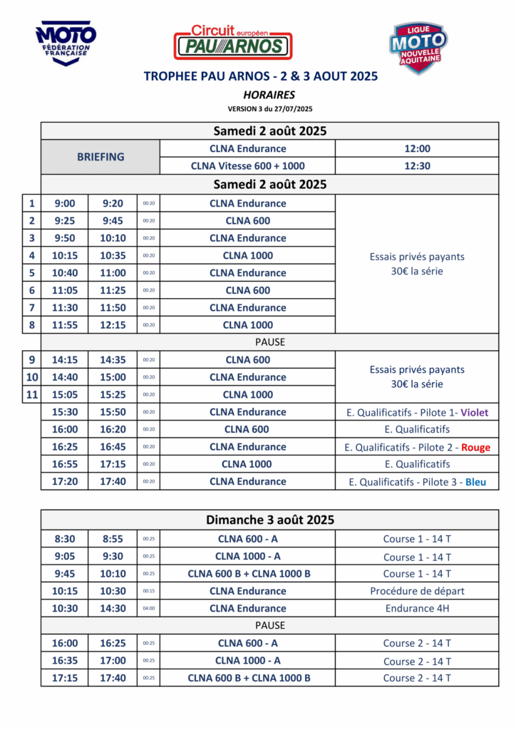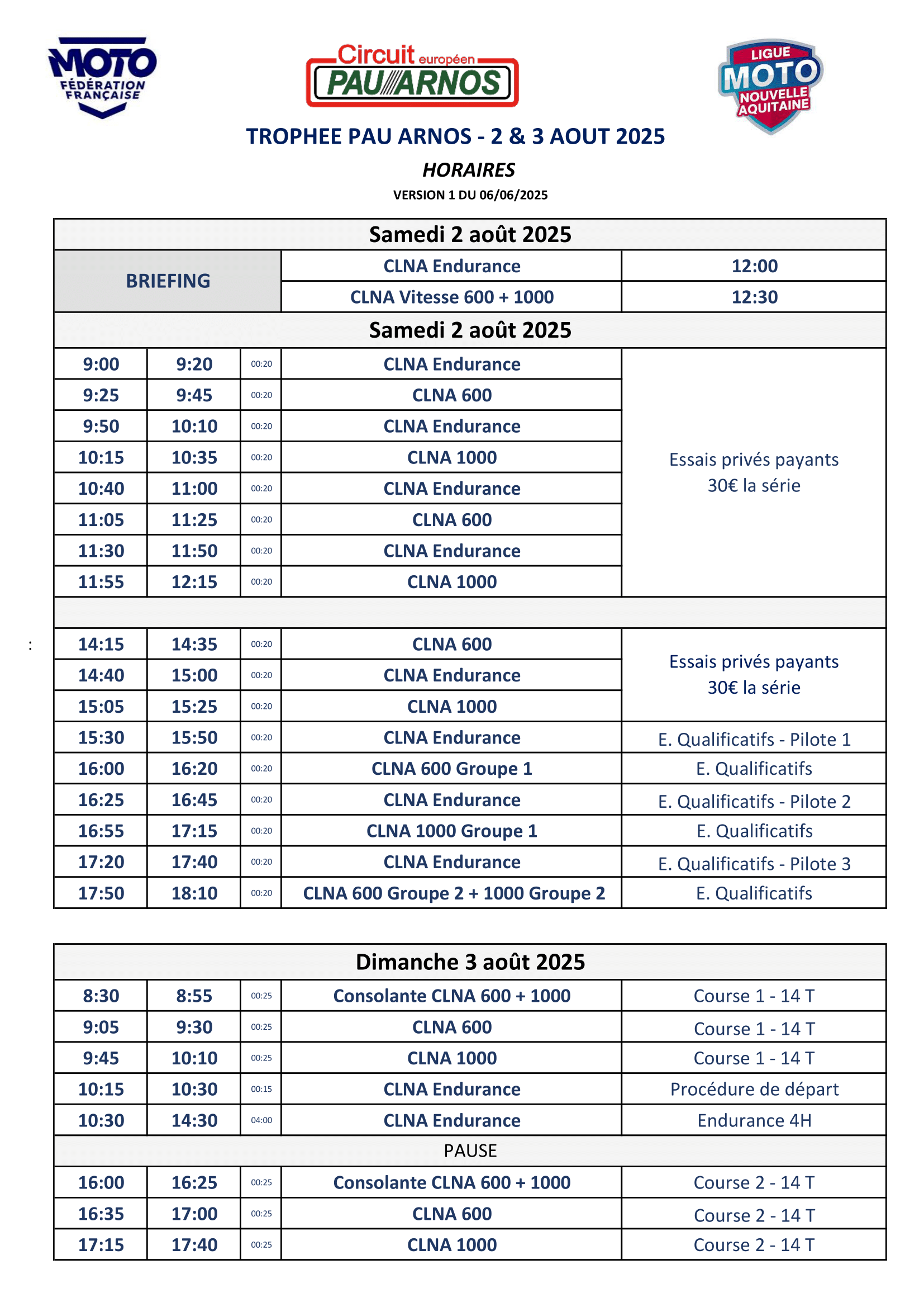 La 2ème manche du Championnat de Ligue Nouvelle Aquitaine 2025 se déroulera sur le Circuit Pau Arnos les 1, 2 & 3 août. Nous retrouverons les 3 catégories qui compose le championnat : CLNA 600c, CLNA 1000cc et Endurance Twin. Un championnat ouvert à tous niveaux de pilotage, une formule idéale pour débuter la compétition. D’année en année le championnat évolue avec des pilotes en nombre sur chaque manche.